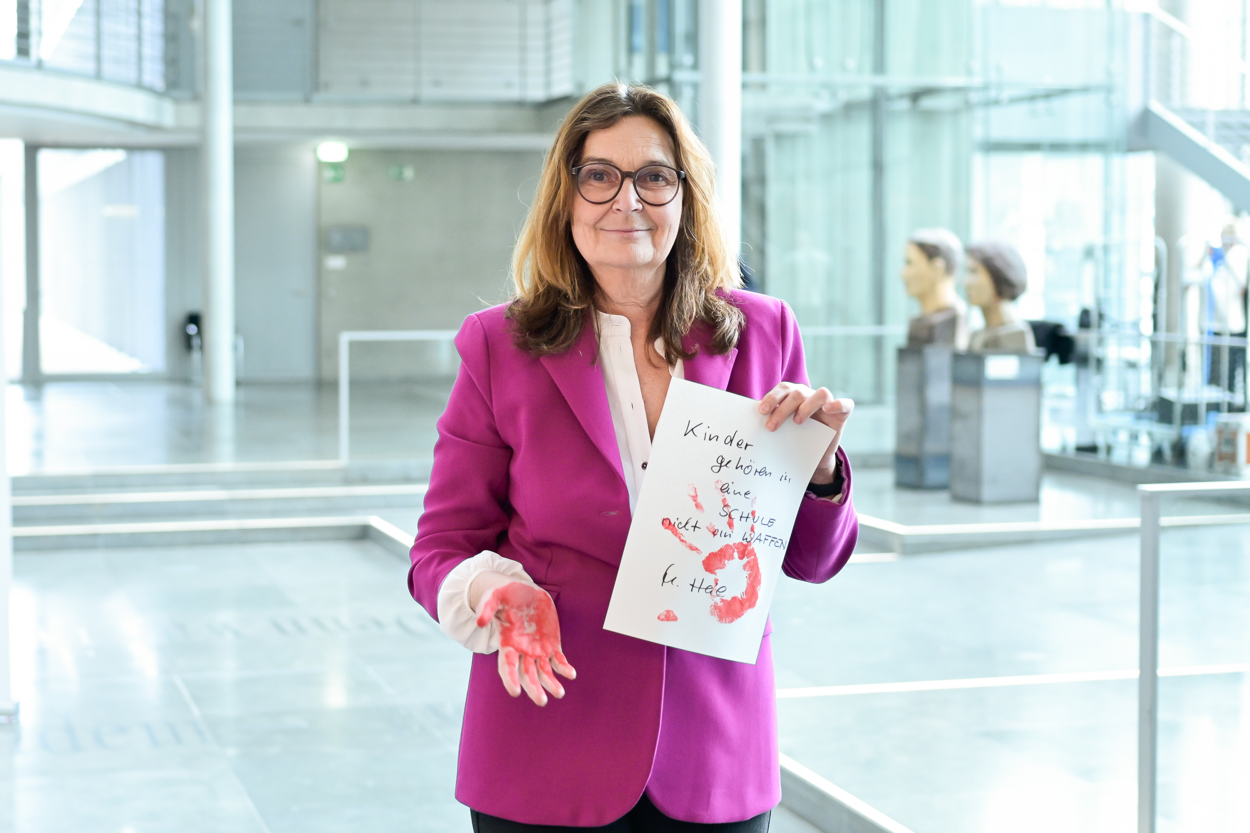 Die rote Hand steht für das völkerrechtliche Verbot von Kindersoldaten und für die Verpflichtung der internationalen Gemeinschaft, dieses Verbot konsequent durchzusetzen. Der Schutz von Kindern gilt uneingeschränkt.
